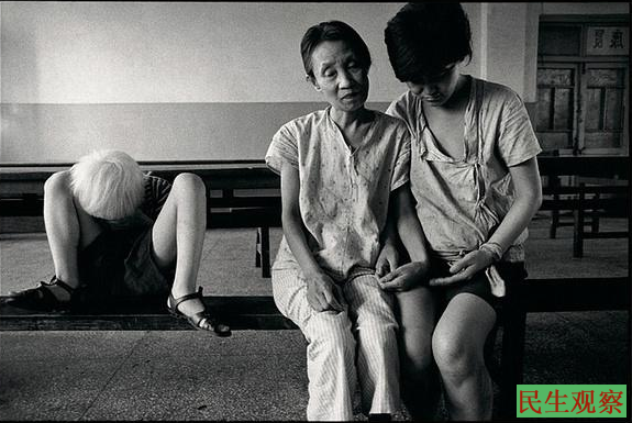 精神病院 女孩,11岁。由于缺少儿童病房,中国绝大部分儿童患者只能同成年病人住在一起。这些成年病人不仅不会照顾他们,有时还会打他们 北京1989