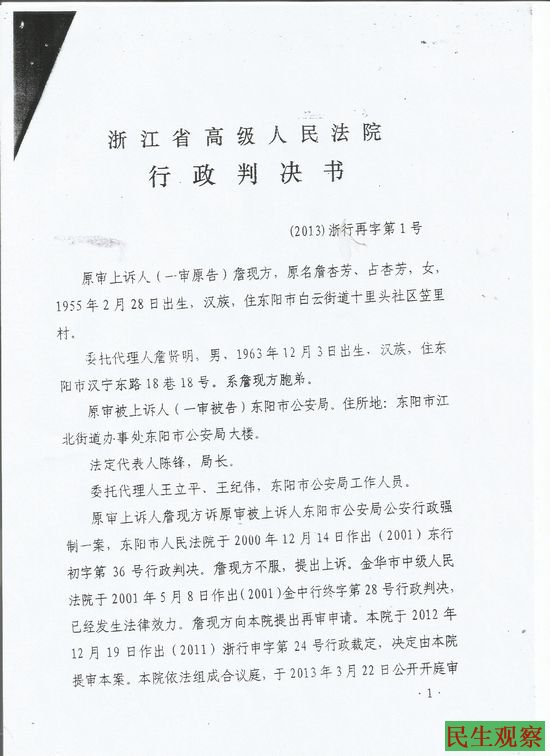 浙江詹现方被精神病案告赢公安 精神病帽子终获摘除