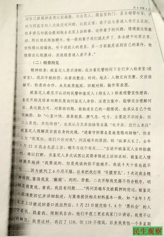 对此朱永健说,被精神病、被拘留、被小偷、被文盲、被关黑监狱、被劳教、被软禁都是他们对待访民的手段。