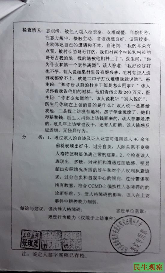 王殿和提供的已经在精神病院死亡的姬兴林的鉴定书