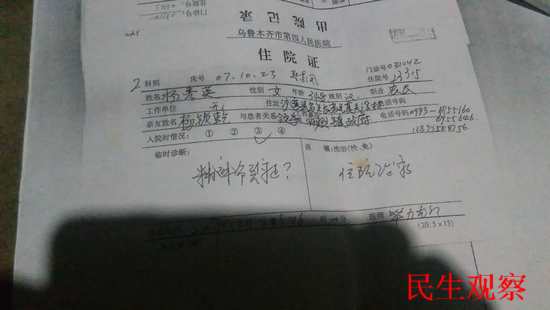 “精神病鉴定做出来以后,他们又让我父亲同意把我送到精神病院做治疗。我父亲不同意,他们政府部门的有一个人却在材料上签上了我父亲的名字。”鉴定做完之后的11月22日杨秀英被从第四人民医院押解到乌鲁木齐安宁医院。