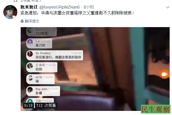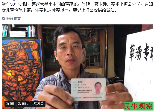 随后,华涌视频采访了董瑶琼的父亲董建彪,董建彪称:“我女儿这次可能命都保不住了!习主席把自己当成皇帝了,过去得罪了皇帝是要株连九族的,我们生活在底层的人就像蚂蚁一样任由权贵们宰割。我们湖南攸县一次出事故就死了100多人,这些底层人民冒死1个月才拿3000多元也要干下煤矿呀!因为他们全家要吃,孩子要上学...我自己也是这样。我现在只求大家帮助我,帮助我保住我女儿董瑶琼的小命,其它就一无所求了。她现在得罪的权贵太高了,我愿意用自己的生命去顶替我女儿服刑,我是她爸爸,没有别的办法了”。闻听此言,华涌不禁落泪对董建彪说:“老董啊!我也有女儿,你说这个,我受不了。你很牛,你是汉子。华涌陪到你,陪到底……”