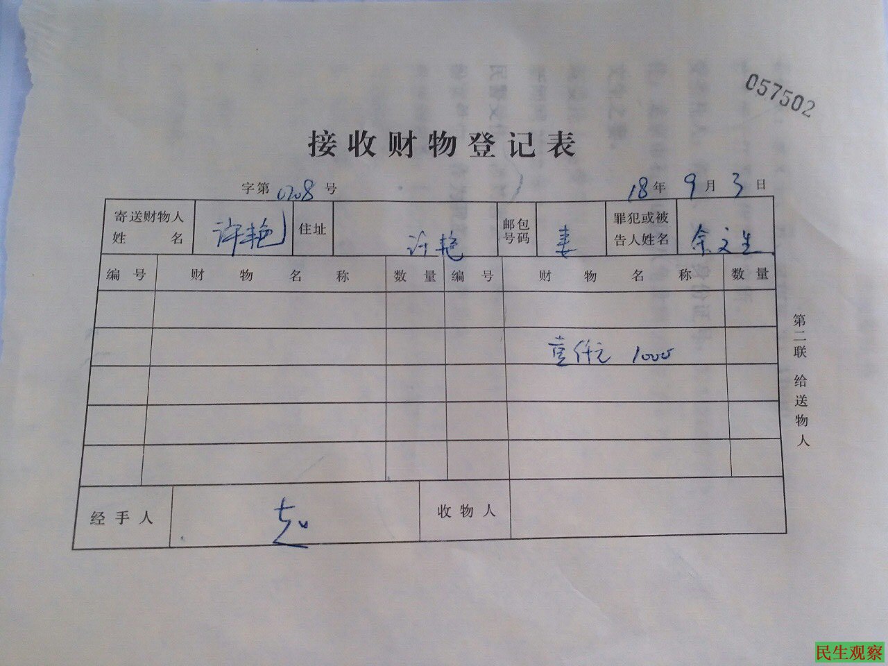 在阅卷和会见不果的情况下,许艳女士为余文生存了生活费,但所见余额与上次一样。许艳女士表示,每次自己给丈夫存钱时,显示的余额基本不变,证明看守所不准余文生购买食品和日用品。看守所的饭菜可想而知,由此担心丈夫的健康情况,尤其是营养不良问题,不禁令人担忧。