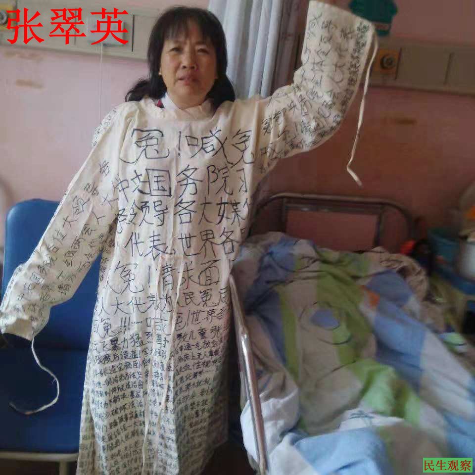 张翠英称,因她是从云南嫁入重庆当地的,在女儿张进宝被打伤残一个月后,老公陈乾鱼为了逃避百般折磨,悄悄带着未满2周岁的儿子离家出走了,至今5年多音信全无,抛弃了母女俩个,所以当地把母女俩不当人看待欺负孤儿寡母,长期拖延案件不查不办拖延不解决。在前往多部门维权无果的情况下,她和家人长期遭到围追堵截、关黑监狱、毒打甚至拘留,在丰都拘留所她被脚镣手铐铐在刑具铁床上、用胶带封嘴被多人毒打,多次被打的昏迷不醒,期间不给任何东西吃,晚上不给被子盖,尿、屎都拉在裤子里面。感冒发高烧呼救后,被用擦地的脏毛巾堵嘴,全身伤痛加剧受尽折磨打骂。