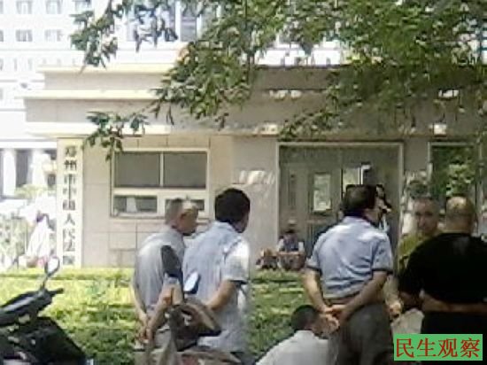 民生观察工作室2013-7-31消息:据一位郑州网友来电告知本工作室,曾经轰动一时的拆迁现场村民刘大孬开货车撞人致死一案,今天上午在河南郑州市中院再次开庭。开庭时间为9:30,警方出动了多辆大巴车、消防车,以及逾两百多警察、协警、治安员等到场维稳。