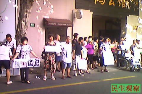 民生观察工作室2013-8-15消息:今天上午,上海高院近百人上访请愿,大家打出标语并高喊:“法官不要脸,白天跟党走,晚上跟‘鸡’走”。
