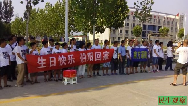 民生观察工作室2014-8-15消息:今天下午5:30分左右,江西维权人彭中林致电本工作室说,今天是郑州十君子之一的常伯阳律师的生日,当时有二十多位网友来到郑州三看前,打出标语为常伯阳律师庆生。