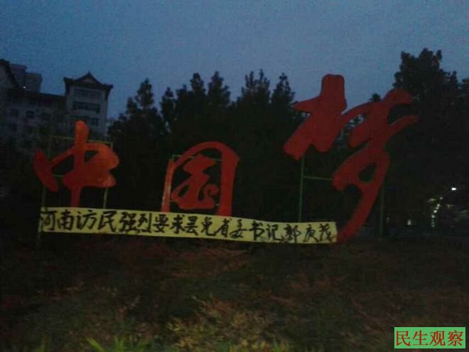 河南两会访民拉横幅 举牌抗议司法腐败 |