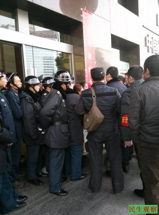 其中,湖南的20多名银行买断工龄人,是在今早的9时许相约来到湖南省分行进行维权的。他们到达湖南省分行总部后,上午半天一直没有任何人出来接待他们。下午,他们就开始站到了营业厅的大门口,这时有很多警察赶到,但是没有发生冲突,只有几十个保安把银行的大门死死把守住,不让维权者进入。对此,这些维权人士表示:今天的维权行动没有任何结果,他们明天会继续进行。