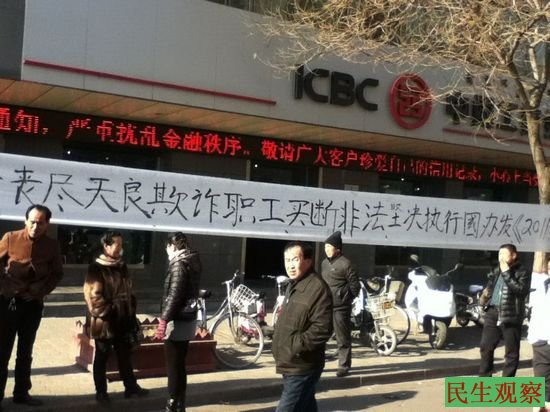 多地银行买断工龄人 拉横幅维权