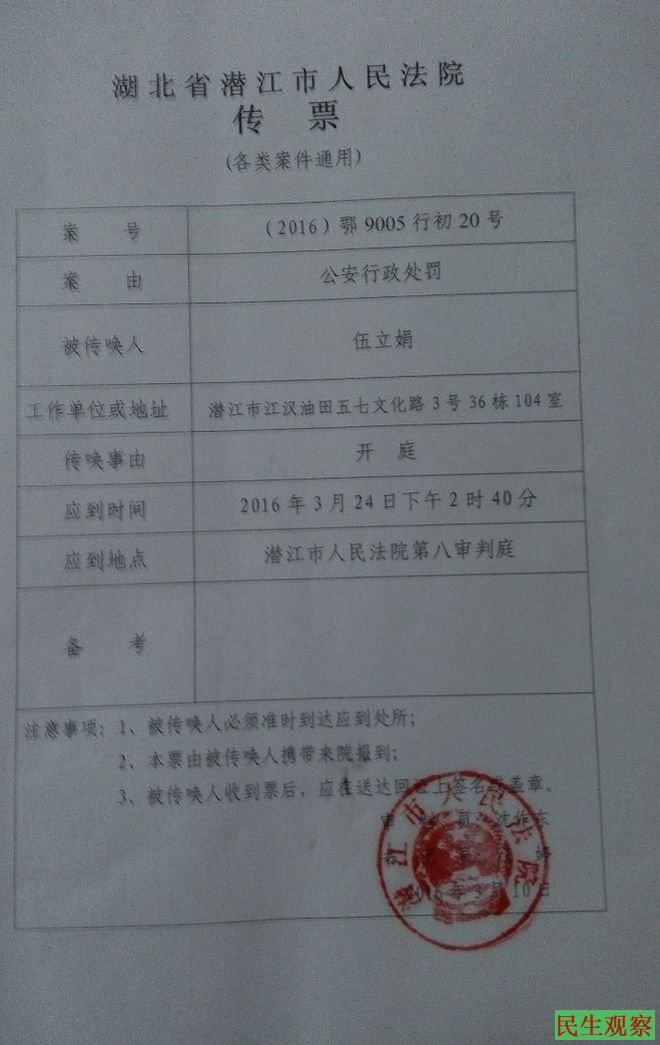 在此特邀请各地访民参与旁听,监督潜江司法是否公正,联系人:伍立娟电话13707227753。