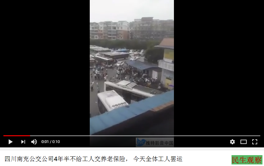 四川南充公交职工罢工抗议剥削 |