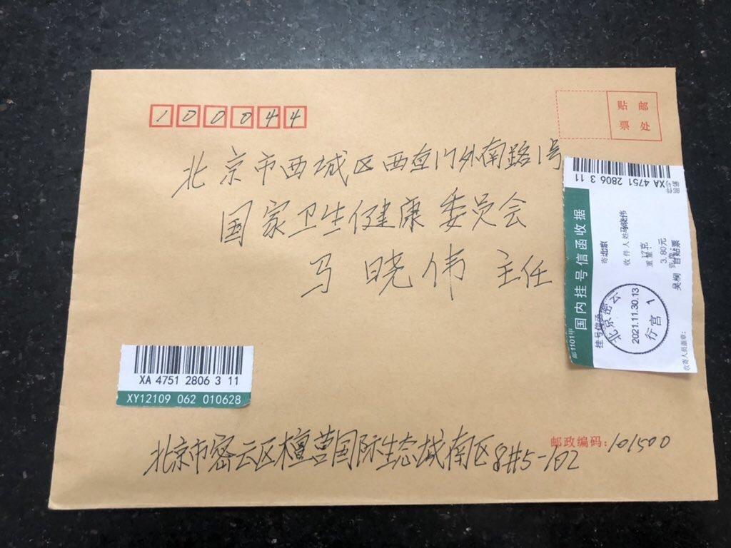 2021年11月30日,谢燕益起草书写了关于健康码的信息公开申请书,12月1日,通过信函方式提交给国家卫健委。