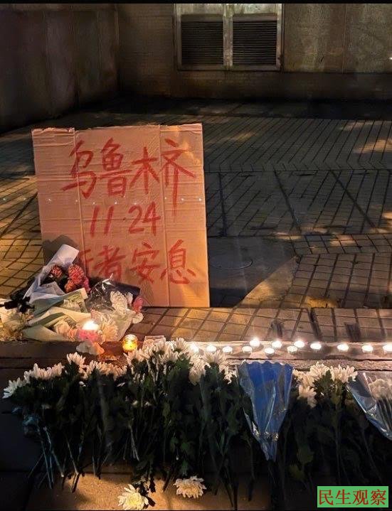 【民生观察2022年11月28日消息】11月24日晚,新疆乌鲁木齐天山区吉祥苑小区发生重大火灾,官方通报事件造成10人死亡,但是目前外界普遍认为死亡人数在20人以上,这是一起因疫情封控造成的人为灾难。一夜间,新疆大火迅速“蔓延”,全国都动起来了。26日晚,全国数十所高校在悼念乌鲁木齐火灾遇难者,学校开始流行“自由、民主”等标语,学生们开始苏醒。上海抗议者在乌鲁木齐路悼念11.24的死难者,并喊出“习近平下台,共产党下台”的口号,现场与警察发生冲突,多人被带走。北京、兰州、广州、南京、成都、武汉民众抗议封控自发解封。抖音上接近550万粉丝的财经博主大蓝,公开批评习近平的动态清零政策,呼吁放开!