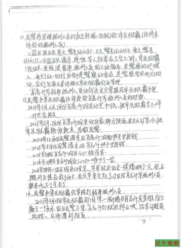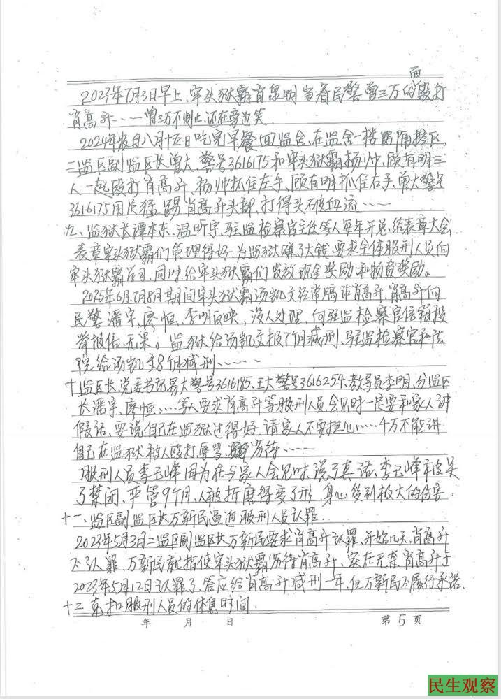【民生观察2026年4月27日消息】江西吉安人权捍卫者肖高升(高举牌)于2021年被捕,后被以虚假诉讼、寻衅滋事罪判刑4年6个月,2026年3月18日刑满释放。近日,肖高升实名向司法部举报江西省吉安监狱纵容牢头狱霸殴打辱骂虐待服刑人员等违法问题,同时要求吉安市中级人民法院进行立案调查。