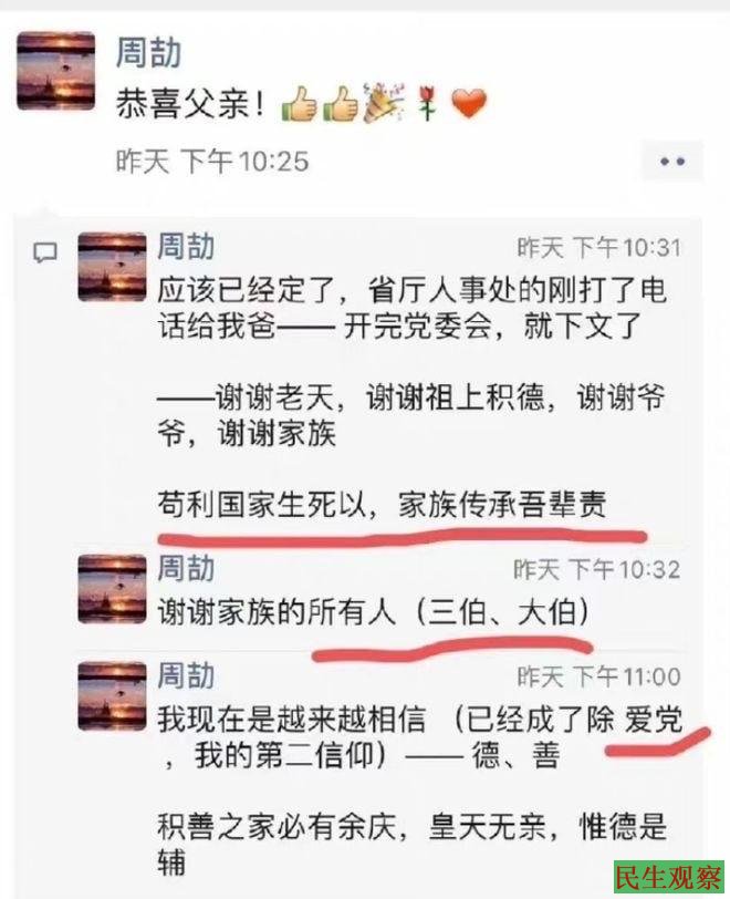 作者慧超在其微信公众号“思维补丁”发表文章《周劼们的“魔法结界”》,文章说,于周劼朴实的言辞之中,网友们得以窥见一种,向来对体制外公众讳而不言的裙带勾连。在经济放缓,阶层流动性趋于弱化的时代背景中,在公众愈发渴望资源分配能够公平公正的愿景下,周劼以及其所隐喻的体制内盘根错节的利益链条,对公众的心理冲击,当然是极为刺痛的。
