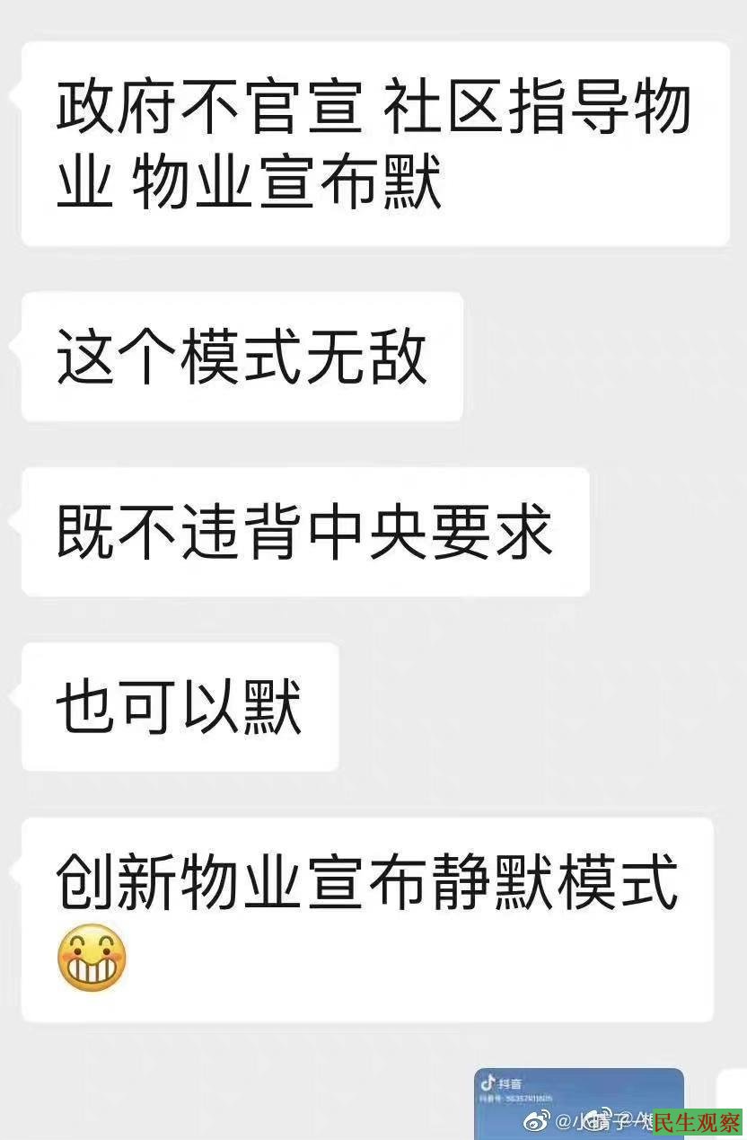 11月12日“重庆市民自发静默7天”上了热搜,重庆市政府没有正式发布公告11月12日零时起全市静默7天。而是由社区指导物业,物业通知业主,小区只进不出的7天模式,市民自嘲被自发性万众一心,全城的人能够在一天内集体自发静默,这才是最厉害的静默。
