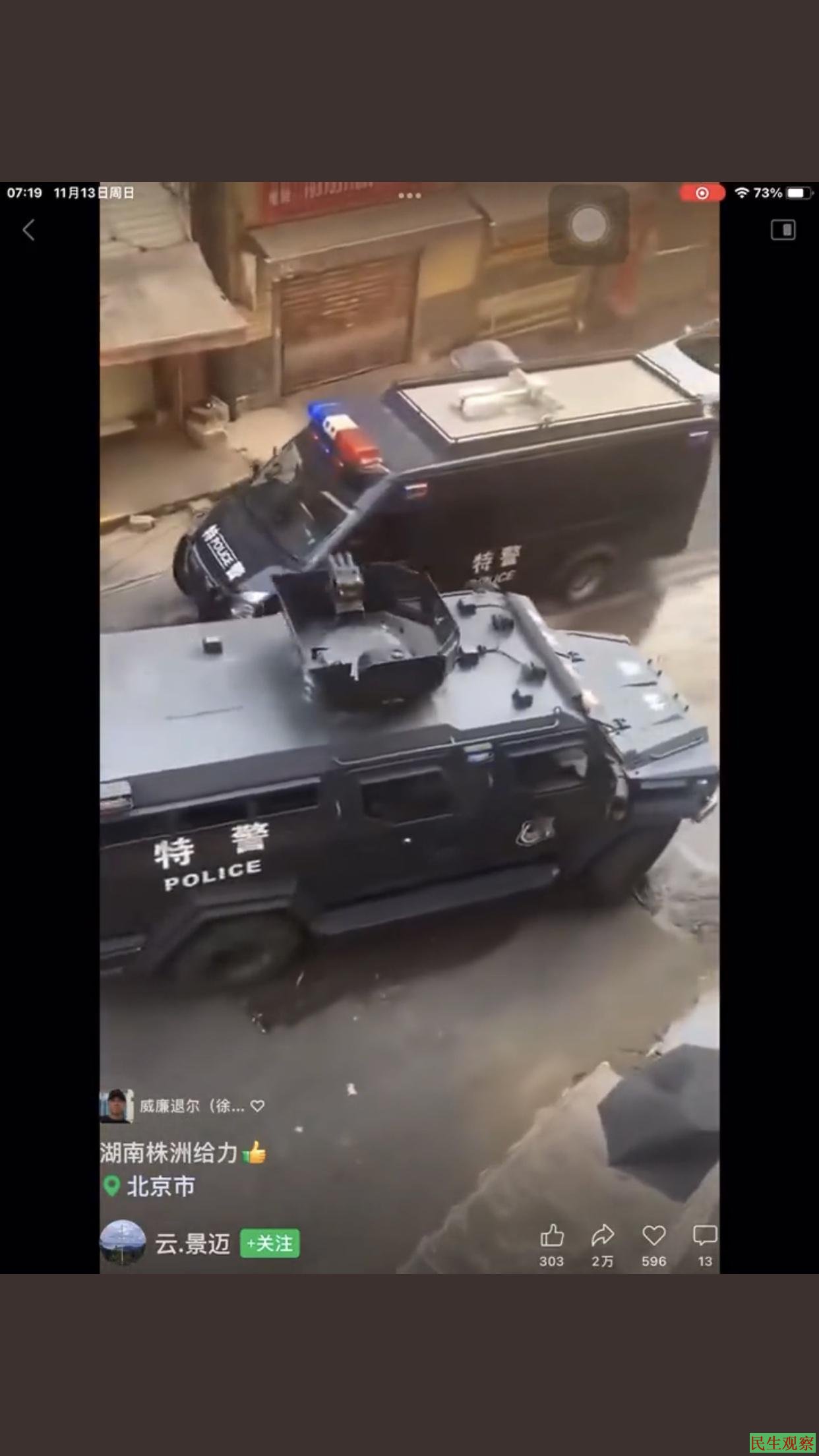 该视频中以武装巡逻的方法恐吓老百姓,对当地居民造成巨大的伤害,11月13日株洲醴陵地区静默第6天,一居民砍杀“大白”三死三伤,几个小时后醴陵地区解封。
