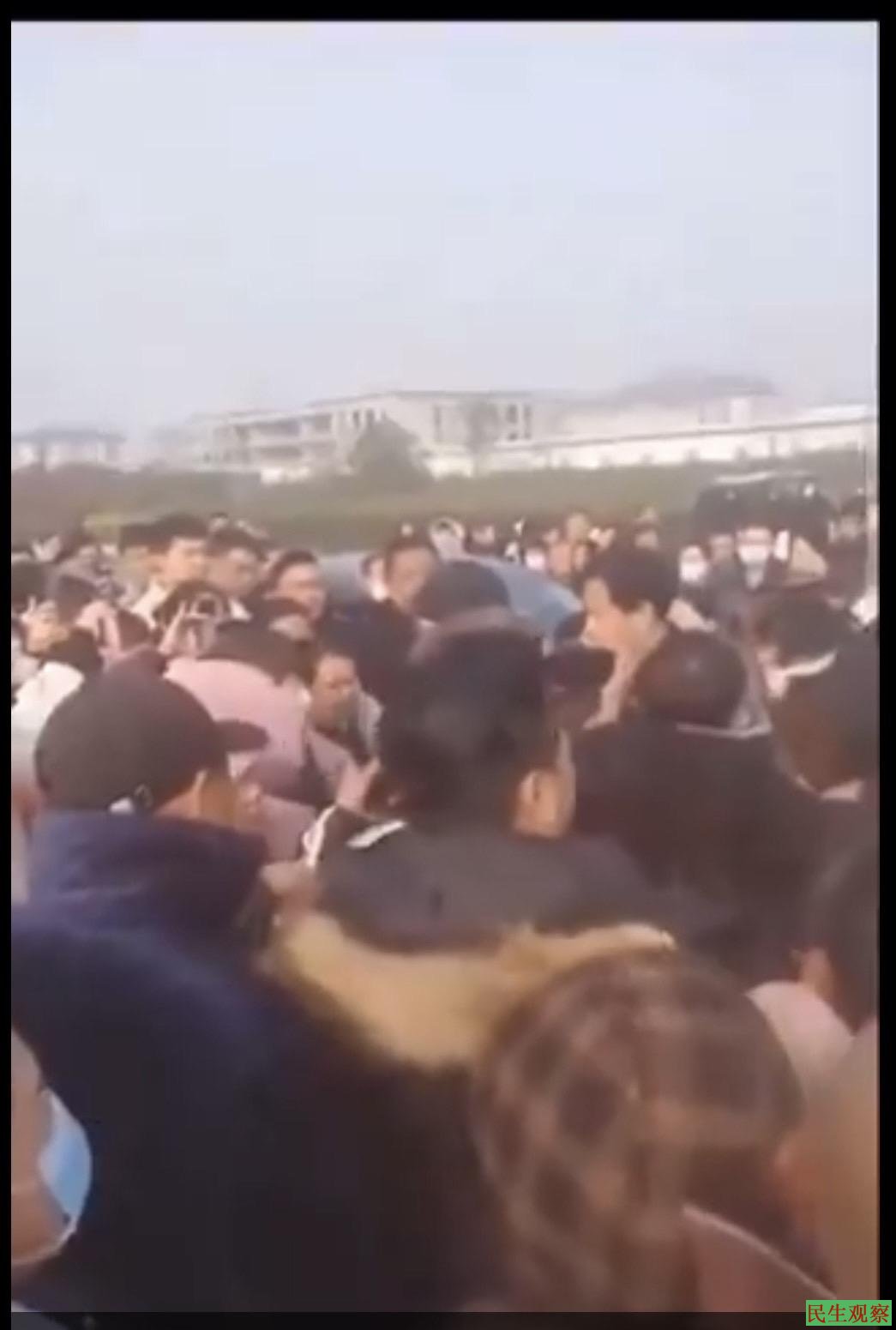期间,民众围住了领导的黑色轿车讨要说法,一度与警方爆发了激烈的冲突和推搡,并赶走了警方。