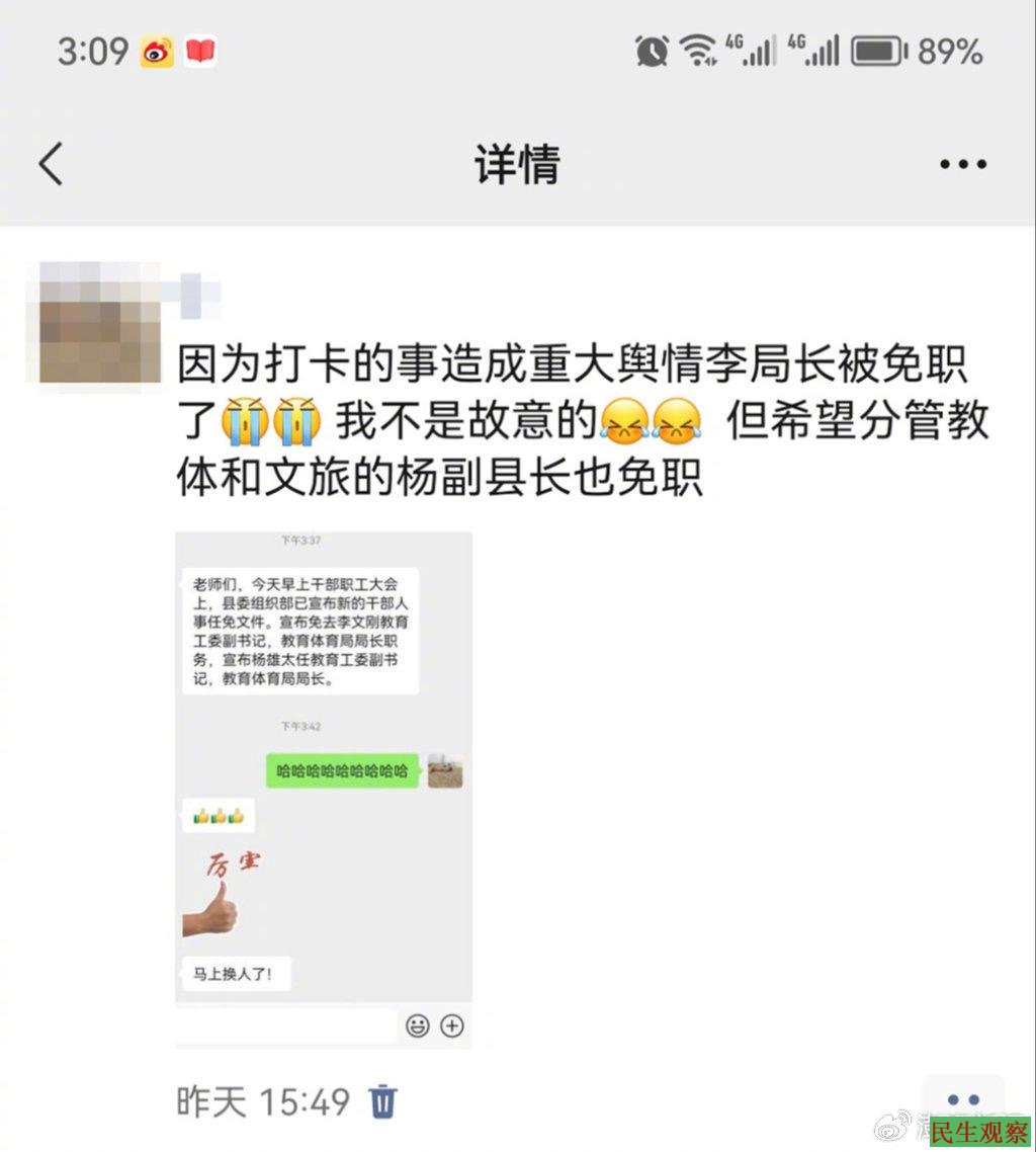 家长发微信朋友圈质疑教体局长被拘 |