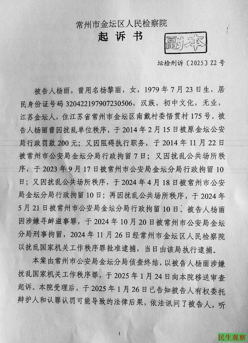 江苏常州杨丽案被起诉至法院