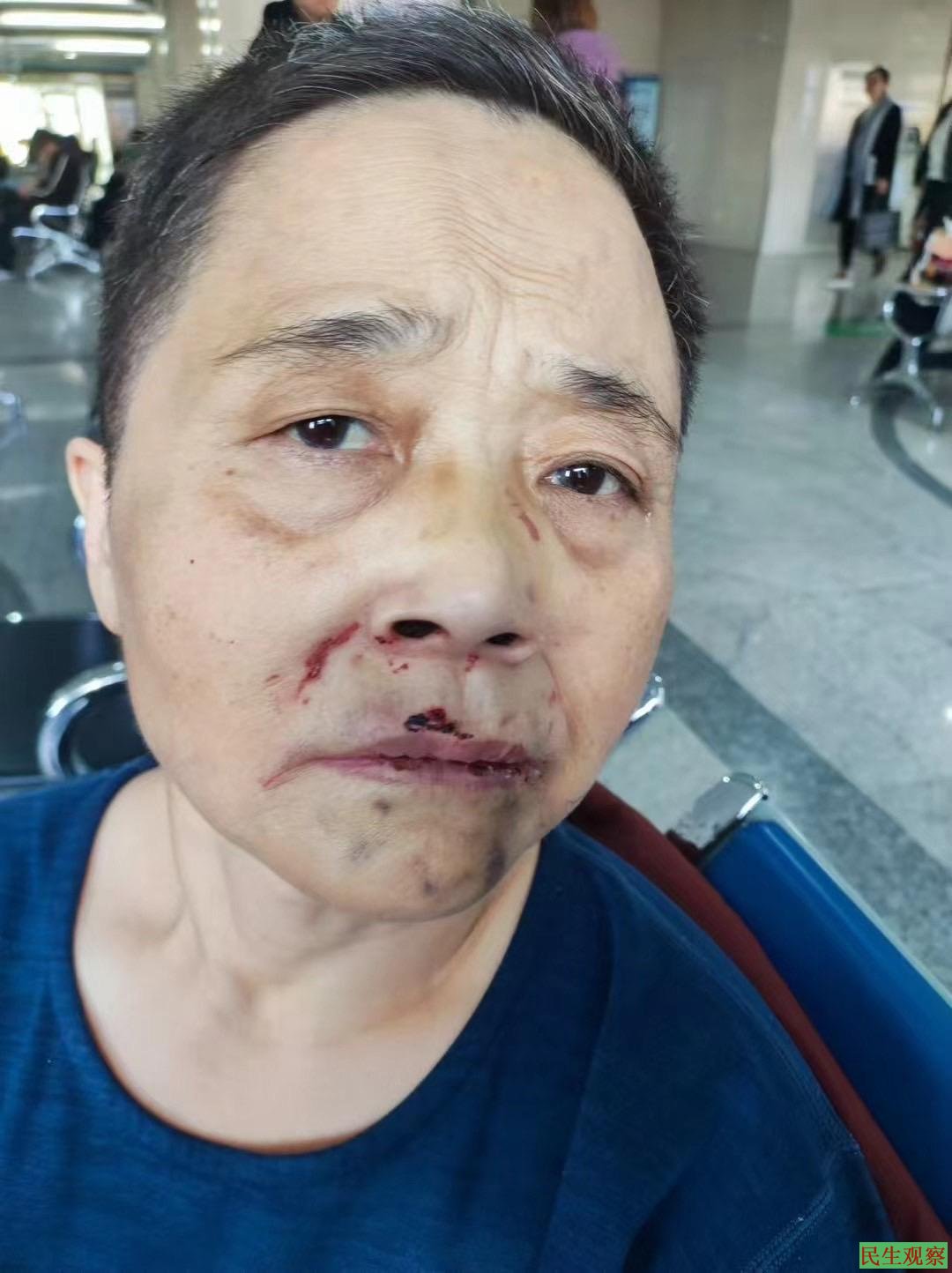 11月12日这天,我姐约好带我去沈阳医院做检查,街道男司机小郭与女工作人员贺丹及长春派出所民警与我姐在医院大门外等了好长时间不见我出来。当9点左右我从住院楼出来走近院门口时,见到我面目全非的情景,他们都惊愣震呆了(而当时我脸与上下外唇的表面已消肿了不少,可看着还是可怕),他们立即对我拍了照。